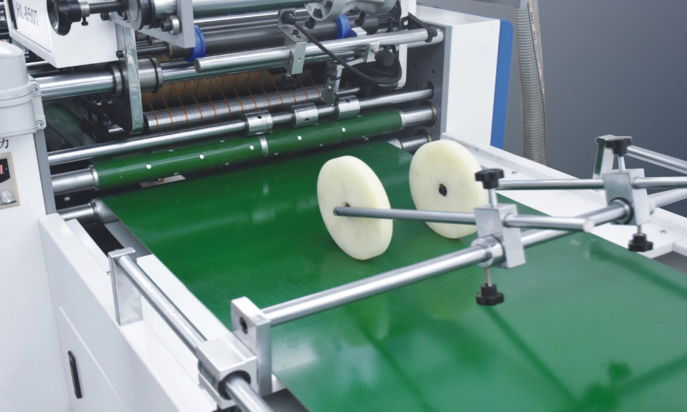 4、涂膠部:涂膠滾筒的橫向于縱向分別由伺服電機(jī)驅(qū)動(dòng),可不停機(jī)直接進(jìn)行雙向調(diào)節(jié),涂膠部還具備空張避膠功能,避免膠水接觸到皮帶,減少因?yàn)榭諒埗l繁停機(jī)清洗皮帶的麻煩。