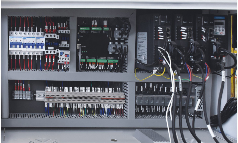 8、電氣系統(tǒng):整機(jī)采用全伺服運(yùn)動(dòng)控制,各種電氣元件、檢測(cè)開(kāi)關(guān)均采用日本、臺(tái)灣、法國(guó)、德國(guó)等公司產(chǎn)品。